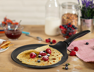 Unbeschichtete Bratpfannen ermöglichen ein scharfes Anbraten und fördern so die Entwicklung intensiver Röstaromen. Mit etwas Übung gelingen aber auch delikatere Speisen wie Crêpes perfekt.